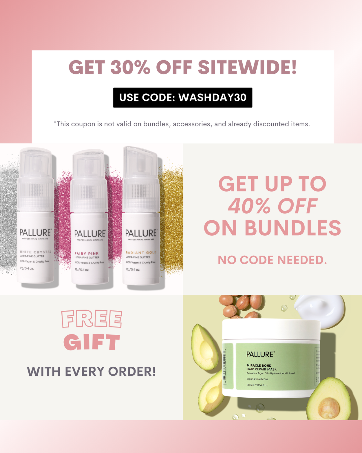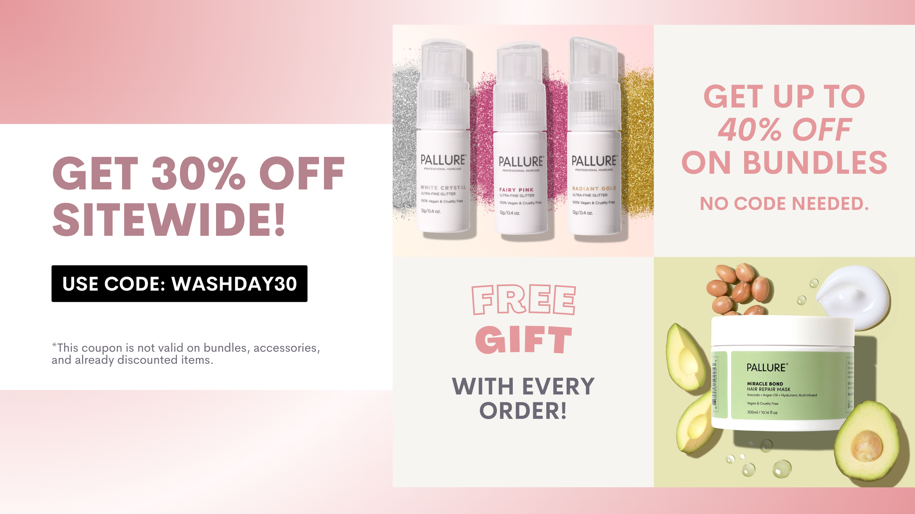 Get a FREE Miracle Bond Hair Mask when you purchase any Pallure hair care. For a limited time only!
