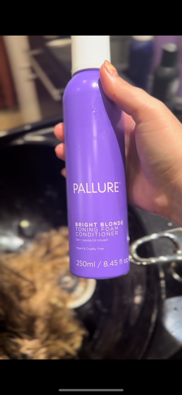 Thank you for sending me the Taylor x Pallure starter kit! It is absolutely amazing and was wayyyyy more stuff than I was expecting (which is always nice). I have been using the bond shampoo and conditioner on myself at home and my hair has been feeling so much better! I have also been using the goat purple shampoo and conditioner on my clients and it is AMAZING! I was a little worried that it would be too pigmented at first but it always leaves me with a beautiful icy white/ blonde!